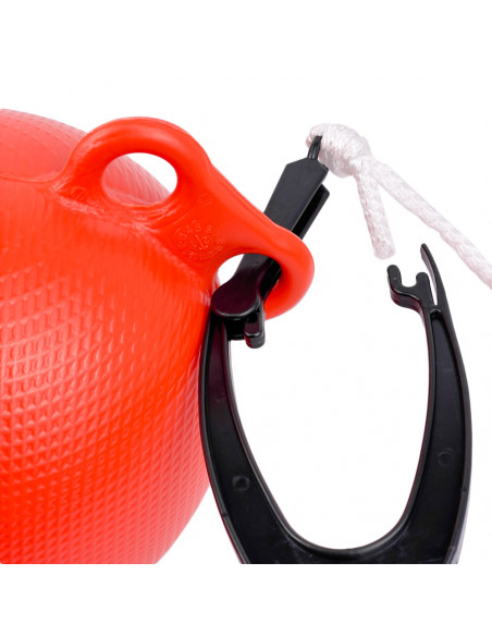 L’estremità amovibile si apre da un lato lasciando passare la cima nell’anello, quindi si aggancia sul lato opposto ruotando e riportando la cima sulla barca (foglietto illustrativo all'interno).