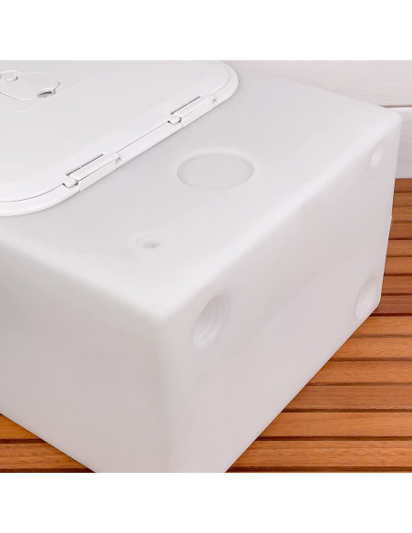 I fori ciechi sono già filettati e pronti per essere aperti: si tratta di raccordi femmina disposti in diversi punti e su più lati del serbatoio.