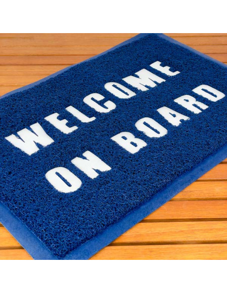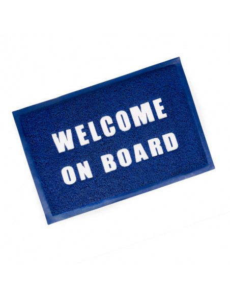La scritta ‘Welcome on Board’ in bianco ha caratteri chiari e ben leggibili, crea una piacevole atmosfera di accoglienza e benvenuto.