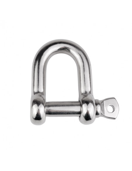 Grillo a D in acciaio inossidabile AISI 316. Perno completamente rimovibile con filettatura all’estremità, da avvitare al grillo a mano, con chiave inglese o altri utensili.