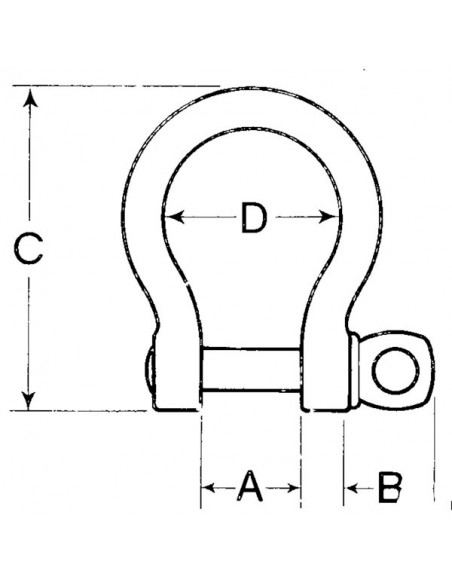 Grillo curvo a forma di omega in acciaio inossidabile AISI 316. Perno completamente rimovibile con filettatura all’estremità, da avvitare al grillo a mano, con chiave inglese o altri utensili.
