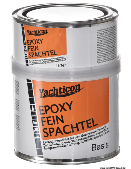 Per riparazioni sotto da linea di galleggiamento. Ripara i guasti causati dalla osmosi, scheggiatura di chiglie e carene, fori nella vetroresina. Temperatura d'uso 10-35°.