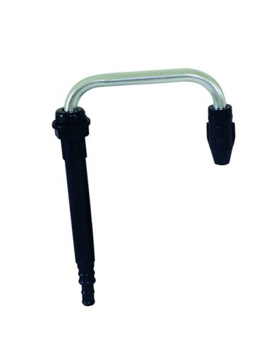 Beccuccio telescopico realizzato in alluminio anodizzato e plastica, girevole a 360° e telescopico. Otturatore regolabile in nylon incluso. Per tubo Ø mm 10 -15