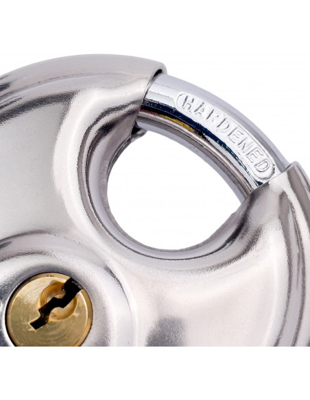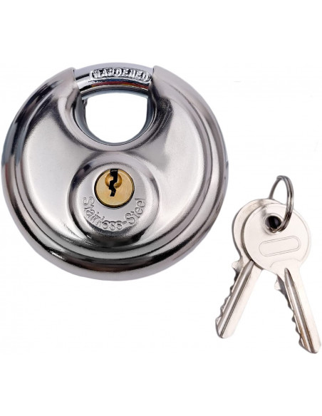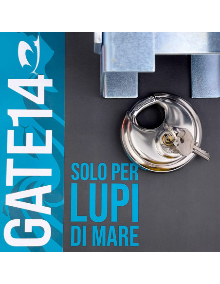Completo di lucchetto in acciaio inox e temprato e doppia chiave di riserva.