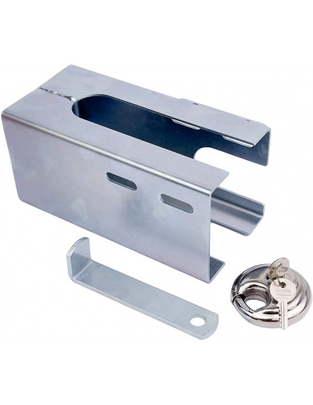 Antifurto a scatola realizzato in acciaio per ganci di traino di auto, assicura dai furti roulotte, rimorchi e carrelli trasporto barche e gommoni.
