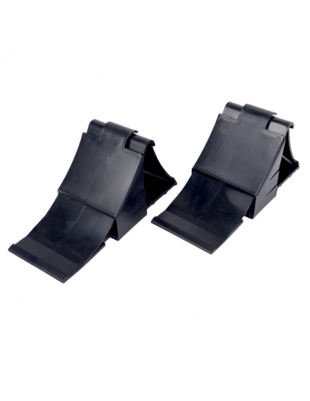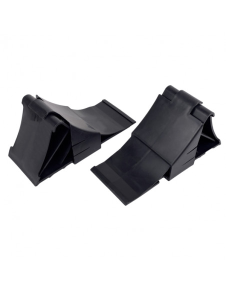 2 cunei di sicurezza per pneumatici, ideati per bloccare le ruote di carrelli e rimorchi.