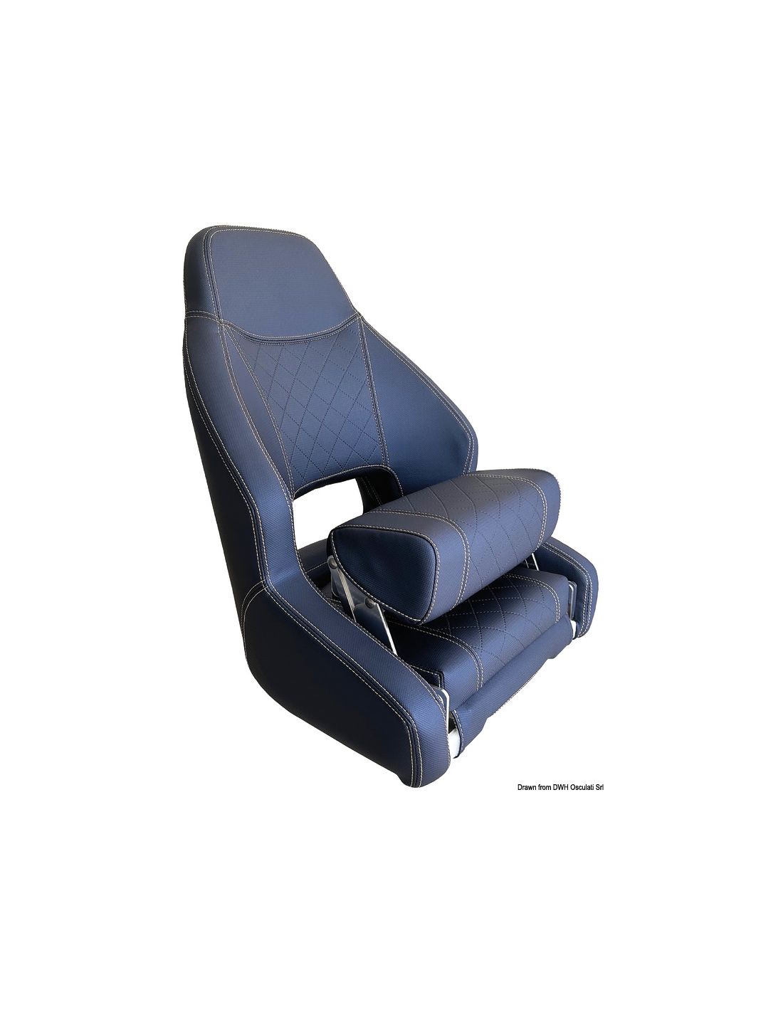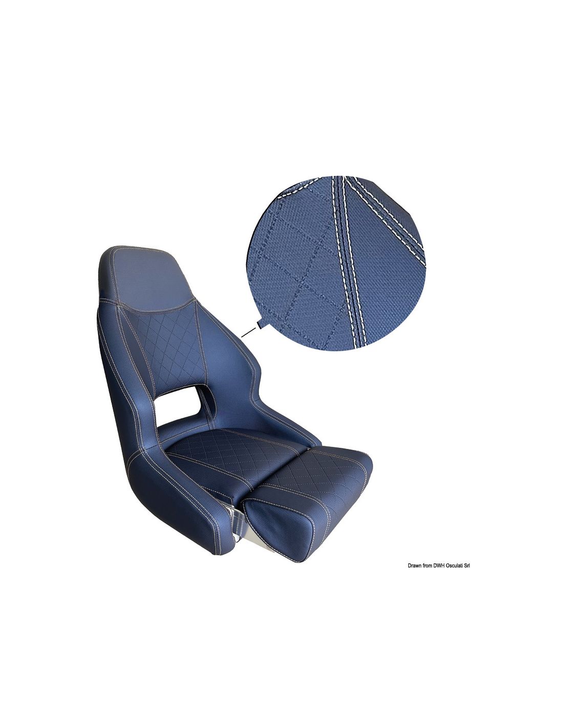 Il sedile è rivestito in vinile nautico morbido e resistente, arricchito da una trama centrale a punti diamantati con doppie cuciture beige, che conferiscono un aspetto elegante e professionale, perfettamente in linea con gli allestimenti nautici di qualità.