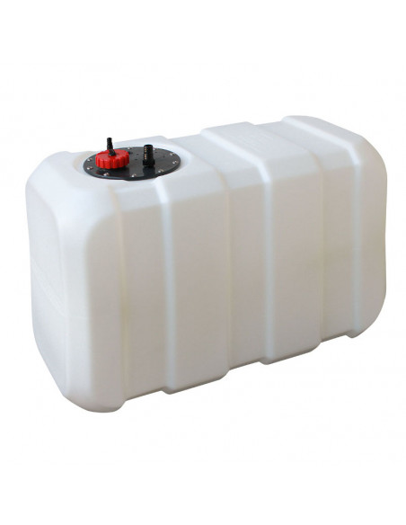 Serbatoio per acqua potabile in plastica, completo di boccaporto ispezionabile, tappo con sfiato, portagomma Ø mm 16/19 e filetto 3/8, portagomma Ø mm 10/12 e filetto 3/8.
