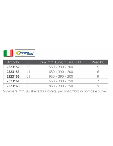 - Completo di impianto per lo svuotamento con pompa autoadescante Jabsco 12v, portata 19 lt/min