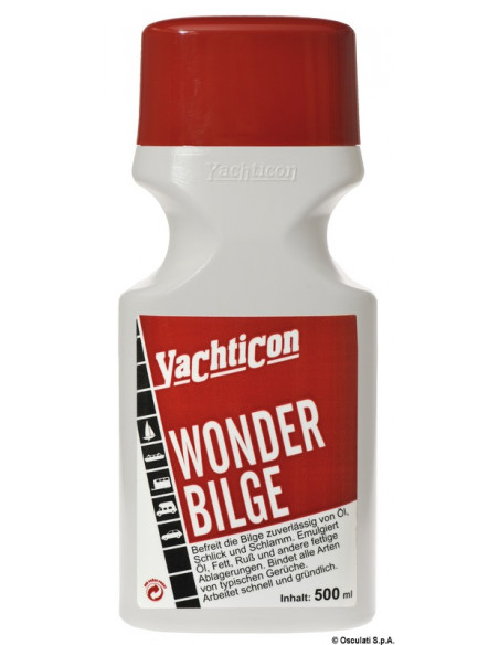 Pulitore per sentine, rimuove olio, morchia, gasolio, grasso ecc., portando questi prodotti in sospensione nell’acqua della sentina, che poi viene espulsa con le pompe. Toglie i cattivi odori.Confezione da 500 ml.