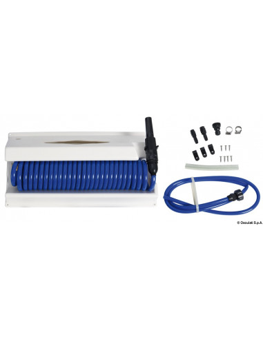 Vano per montaggio a parete completo di erogatore regolabile e di tubo in poliuretano per collegamento alla rete idrica.