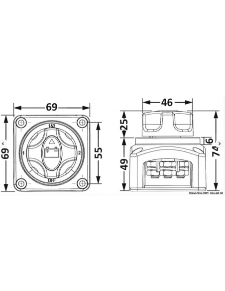 - Deviatore con posizioni: Batt. 1 - Batt. 2 - Batt. 1+2 - OFF