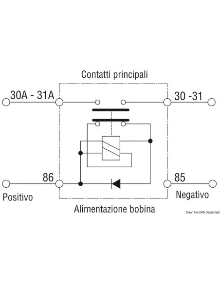 Si collega sotto chiave, se si vuole togliere completamente la corrente in modo automatico (in questo caso la chiave d'avviamento ha bisogno diuno scatto supplementare) oppure semplicemente con un interruttore ON-OFF indipendente dalla chiave, che può anche essere nascosto a far da antifurto. Grado protezione IP65, contatti in rame argentato. Stacco del positivo o del negativo.