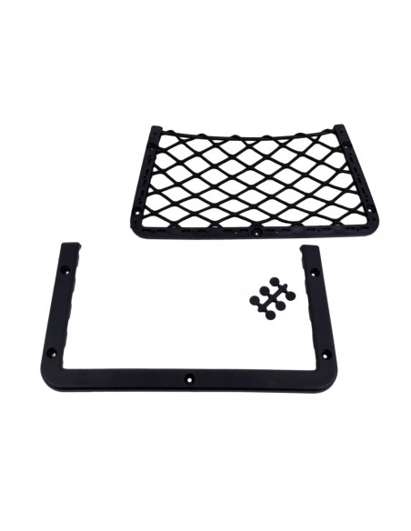 Tasca salvaspazio con rete di contenimento e cornice doppia in plastica.