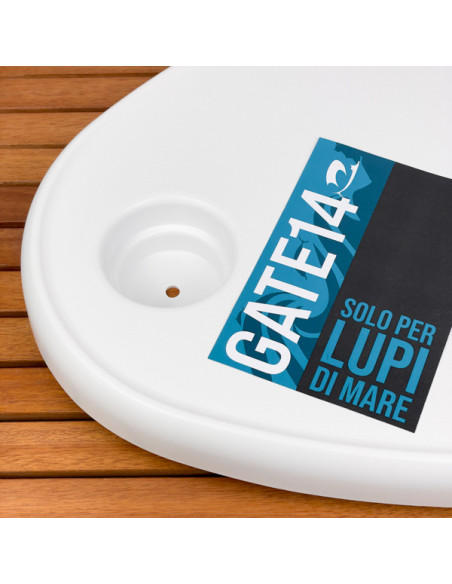 La gamba di supporto può essere fissata sia al centro del tavolo sia di poco decentrata, per permettere di sfruttare il piano d’appoggio negli spazi ristretti a bordo, aumentando lo spazio di attività senza rinunciare alla comodità.