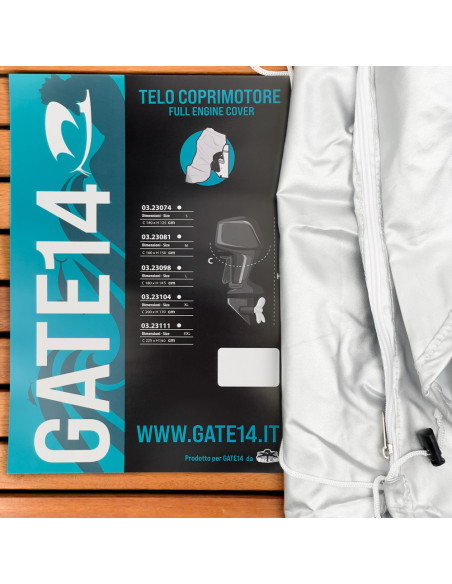Telo coprimotore fuoribordo realizzato in poliestere color argento, modello Full Body.