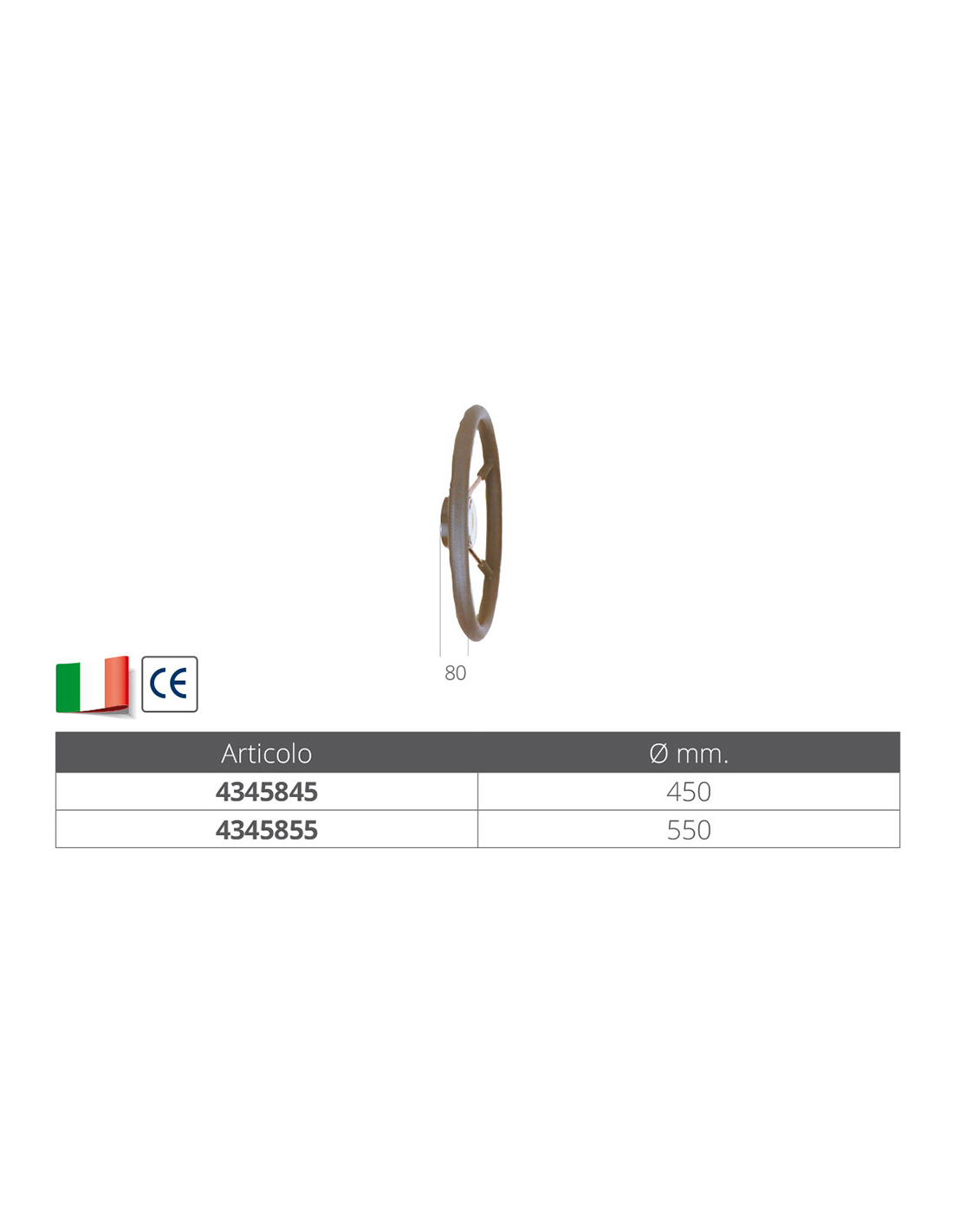 Volante a 6 razze con impugnatura e razze in acciaio inox rivestite in poliuretano morbido, colore grigio.