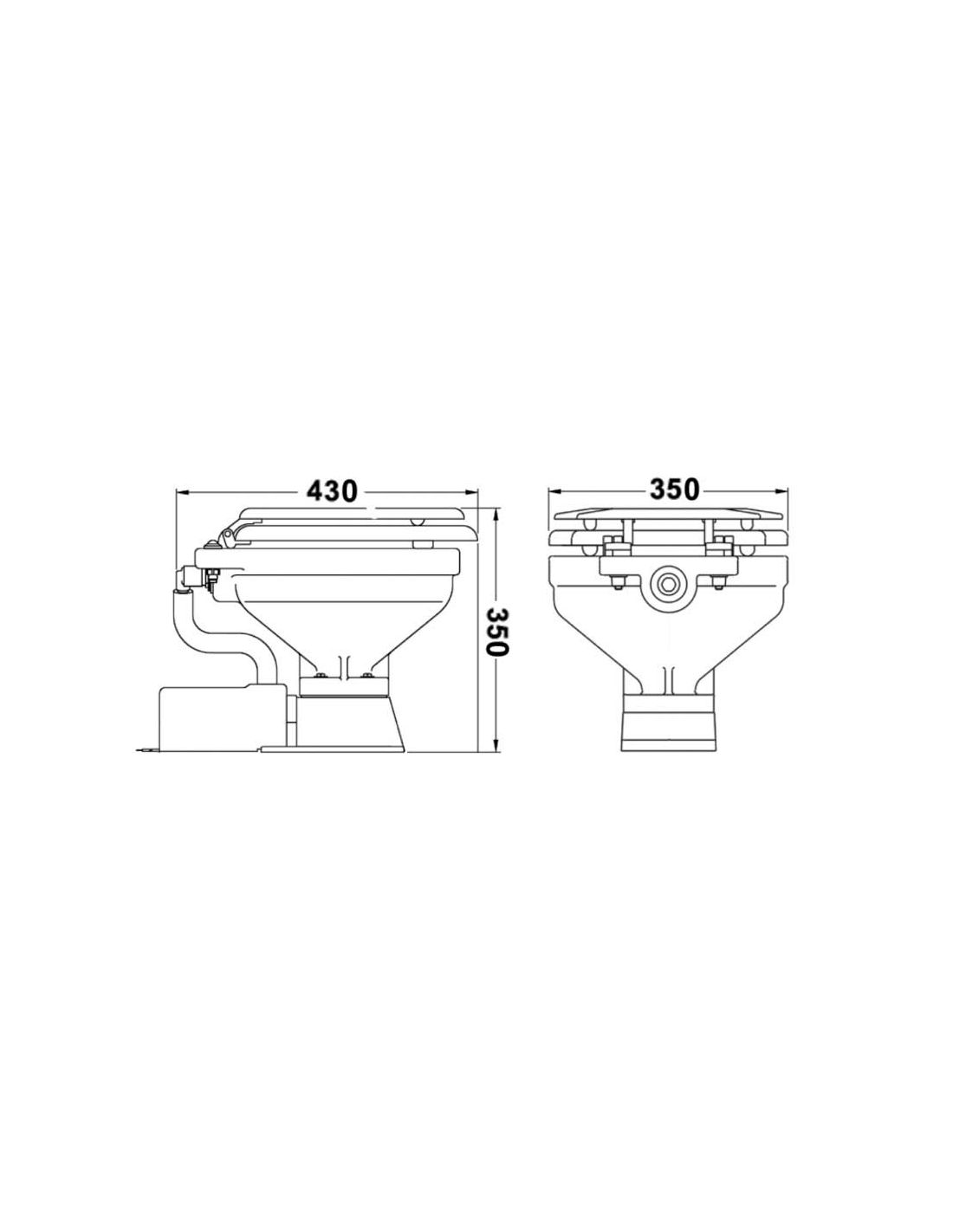 Dotato di pompa autoadescante integrata, il WC può essere installato anche sotto la linea di galleggiamento, offrendo grande flessibilità di montaggio su imbarcazioni a vela e a motore.