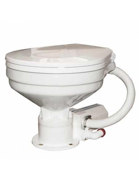 WC marino elettrico in porcellana bianca sedile in plastica fornito con interruttore per il comando della pompa.