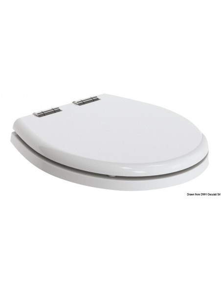 Coprisedili adatti alle diverse generazioni di wc elettrici Tecma, colore bianco, provvisti di sistema di chiusura frizionata.