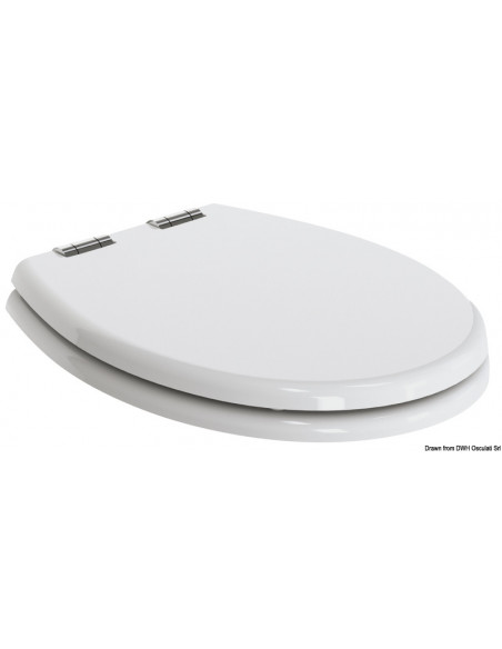 Coprisedile adatti alle generazioni 1 e 2 di wc elettrici Tecma, colore bianco, provvisti di sistema di chiusura frizionata.