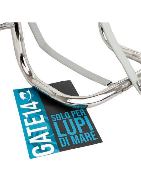 Sella in acciaio inossidabile ideata per lo stivaggio di ogni modello di zattera di salvataggio, da 4 a 12 persone, grazie ai tubi e alla cinghia di chiusura regolabili.