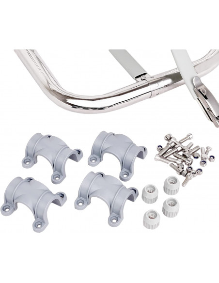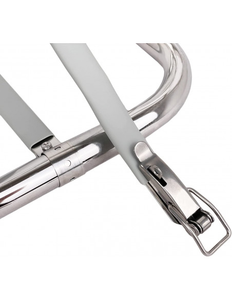 Estrema versatilità: i tubi esterni scorrono su quelli interni regolando le dimensioni della staffa e rendendola perfettamente aderente alla borsa porta-battello.
